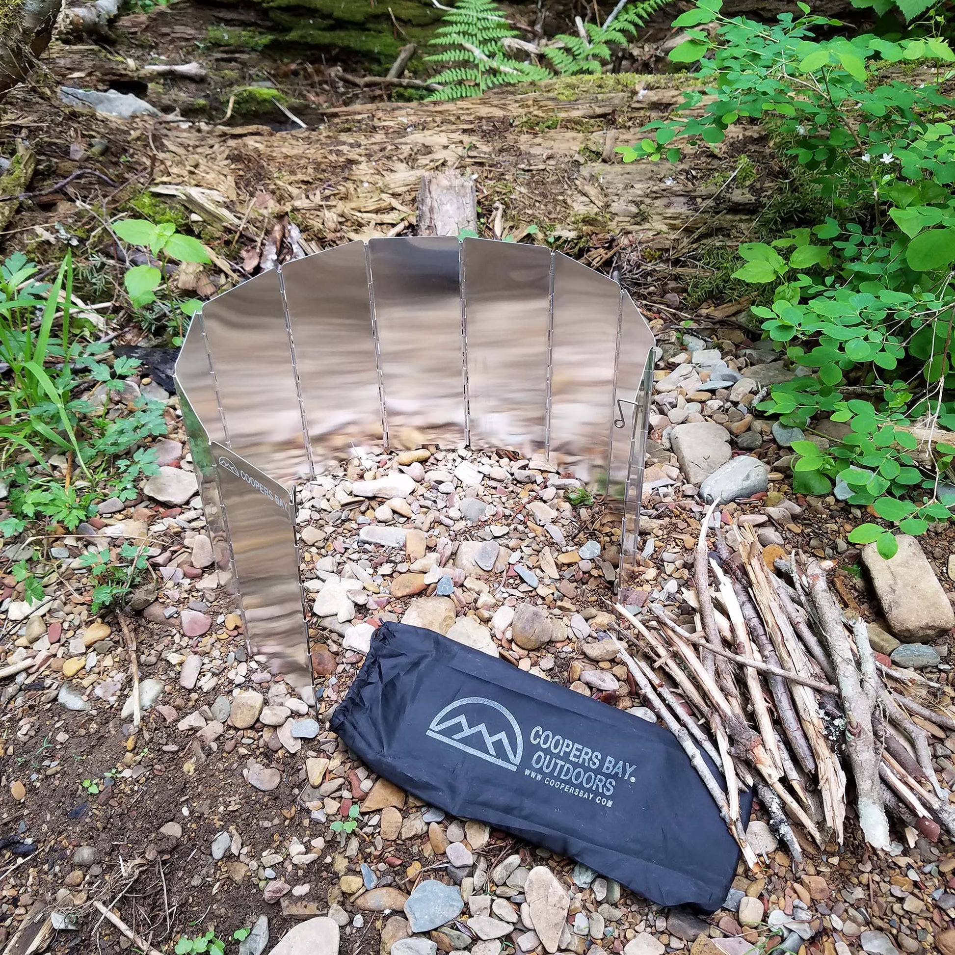 Our Lightweight windscreen is used to block the wind when starting a fire or when cooking on a small twig stove, alcohol stove or butane camp stove. The 10-panel design gives you added wrap around coverage compared to cheaper 8-panel designs. Made from thin gauge aluminum, this windscreen also includes mini-stakes on the ends to help secure the panels in the ground for added stability. This is a must-have tool in your pack when planning to cook on a mini stove in the outdoors . Includes a lightweight nylon carrying case.