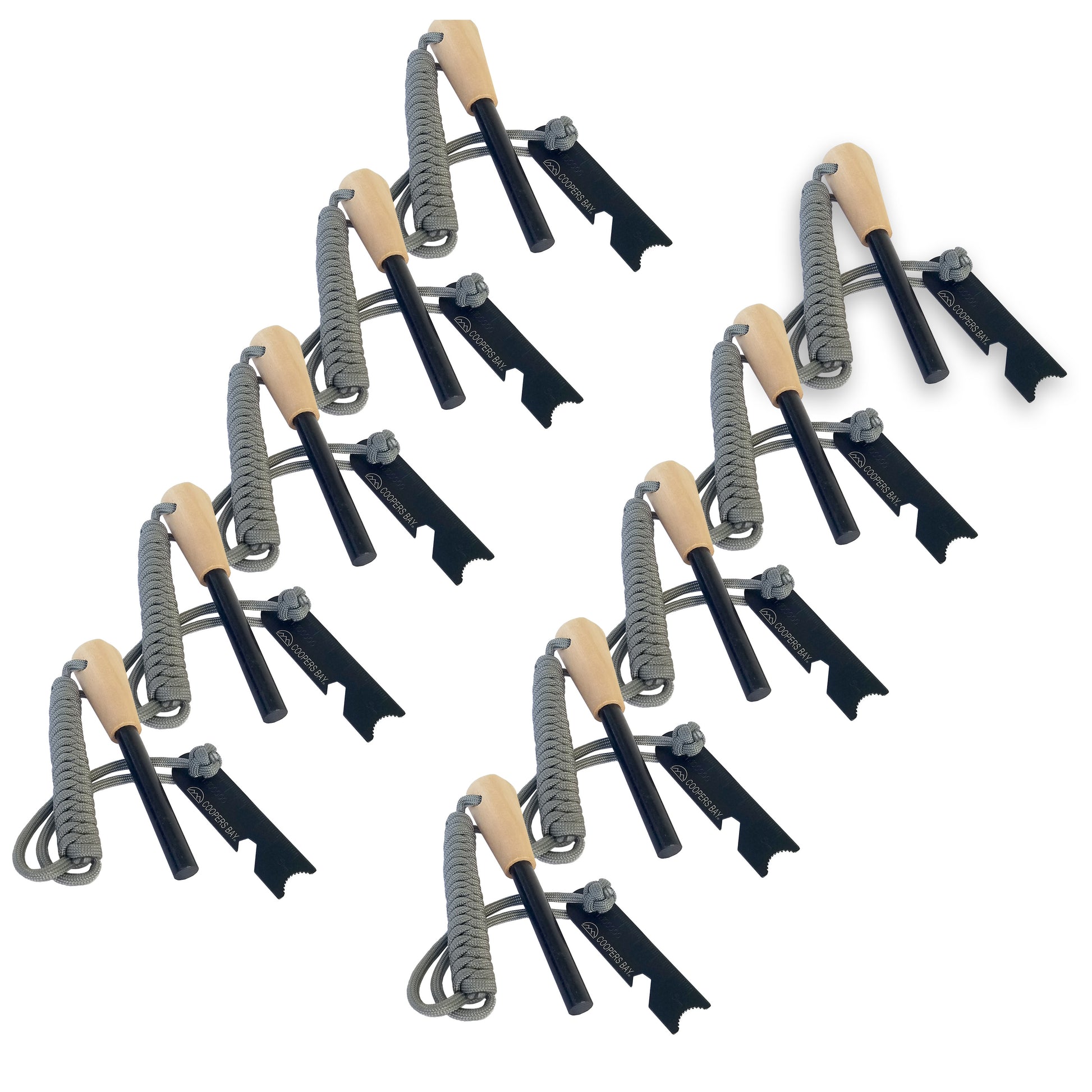 Our FireStorm-Plus uses an Extra large 1/2" diameter Ferrocerium "Ferro" rod to ensure that it is strong enough to hold up when it's crunch time. Like all of our PyroStryke ferro rods, it contains a special blend of alloys including magnesium that ensures a shower of molten hot sparks (up to 5500 degrees) and around 18,000 strikes of showering hot sparks assuring quick combustion of your tinder. Don't settle for inferior quality when your life could be on the line. The solid wood ergonomic handle includes a braided lanyard with 4-feet of 7-strand 550 paracord which can be used useful for a variety of survival tasks such as gear repair, building a shelter, making a spear, used as fishing line or any other number of uses.