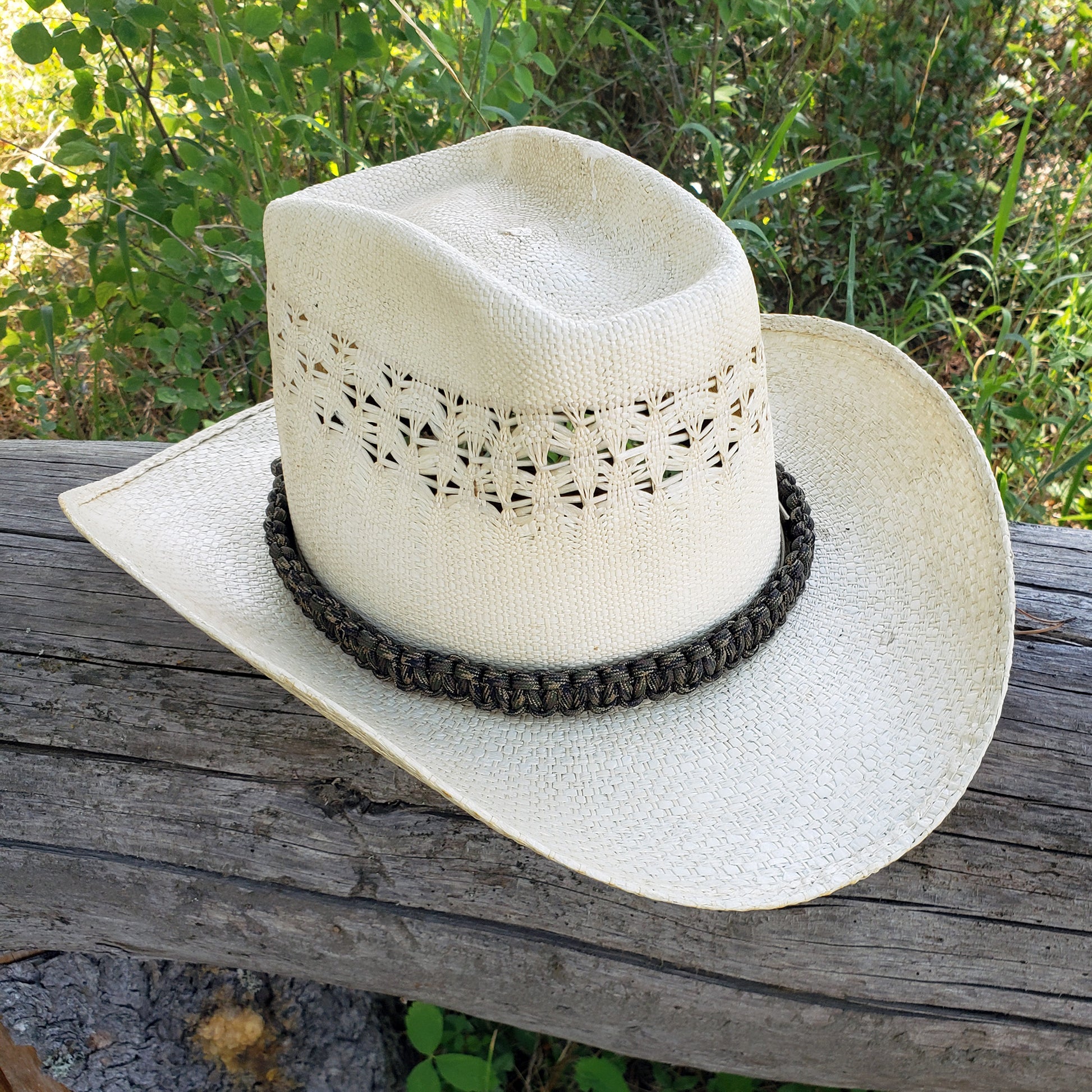 Not only are these fashionable accessories to dress up your cowboy hat, but they are also practical as well! Most seasoned outdoorsmen know that paracord is an invaluable resource to have available when out on the trail so we've created this hatband so it will always be close by. We've used a single continuous strand of 550 Type III paracord that is approximately 25 ft. in length. In an emergency situation, the cobra weave can be untied and used for countless survival and utility uses. The band is adjustable and will fit most hat sizes from 7 through 8-1/4. We're proud to say that we hand tie these right here in the Pacific Northwest using high-quality USA-produced paracord.